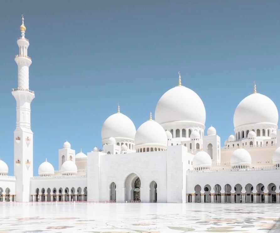 アブダビにあるUAE最大級のモスクです。白亜の大理 石の豪華な外観が特徴で、内部には世界最大級のペル シャỈ毯やスワロフスキーのシャンデリアがありま す。